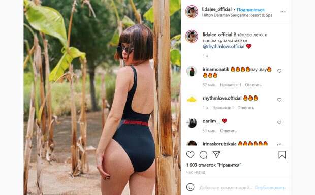 Популярная украинская певица Лида Ли, которую продюсирует Дмитрий Монатик, отправилась на отдых и показала свою фигуру в купальнике Лидия Скорубская (настоящее имя певицы), которая в последнее время активно развивает свою сольную карьеру, решила немного отдохнуть от работы. Судя по геотегам в Инстаграм, певица отправилась в жаркую Турцию.