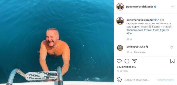 Певец Александр Пономарев похвастался снимком, сделанным в бассейне Известный украинский певец, композитор и народный артист Александр Пономарев активно ведет свою страницу в социальной сети Instagram, где за его жизнью следят более 138 тысяч преданных фанатов. Сейчас 47-летний артист наслаждается отпуском.