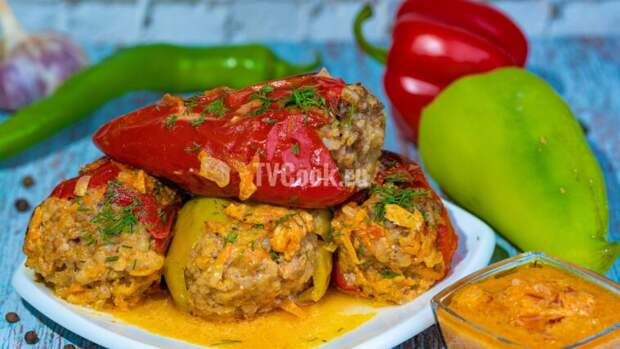 Идеальный рецепт приготовления фаршированных мясом и рисом перцев в сметанно-томатном соусе в духовке, которые приятно удивят своими замечательными вкусовыми качествами и обязательно понравятся многим! Ингредиенты Перец болгарский 12 шт. Мясной фарш 600 гр. Рис полуготовый 200 гр. Морковь 1 шт. Лук репчатый 1 шт.