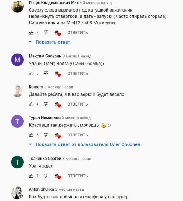 Можно увидеть, как он со своими друзьями поехал забирать старые и прогнившие «Запорожцы», чтобы их снова завести и проехаться. Стоит отметить, что очень много автолюбителей подписано на канал Олега Соболева. Они активно наблюдают за его всеми видеороликами, чтобы посмотреть на разнообразные эксперименты. Нужно подчеркнуть, что видео с "Запорожцами" оказалось довольно интересным. Люди, которые принимают в нем участие, – настоящие мастера своего дела. Многочисленная аудитория, которая посмотрела данный видеоролик, не забыла о себе напомнить и принялась оставлять отзывы под публикацией Олега. "Сверху слева вариатор под катушкой зажигания. Перемкнуть отвёрткой. и дать - запуск! ( часто спираль сгорала). Система как и на М -412 / 408 Москвичи", "Удачи, Олег) Волга у Сани - бомба))", "Давайте ребята, я в вас верю!!! Будет весело", "Красавци так держать , молодцы", "Ура, я ждал", "Как будто там побывал отмосфера у вас супер", "Годный контент подъехал. Пора чайник греть!)))", "мы брали запорожец который 30 лет простоял в гараже я теперь всем говорю нужно ставить только новый акебе иначе если акебе старый то запорожец может не завестись даже и с толкача", "Ты не отравился, ты переел их", "Круто", "Мужик красива живёт", "Заводят хе. за щеку, а мотор запускают! Смысл крутить стартером полчаса? Посмотрите поплавковую камеру, выставите зажигание, свечи прокалите.... Как говориться не знаешь броду, не суйся в воду!", - оставляют отзывы пользователи сети.