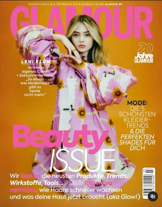 На обложке апрельского Glamour красотка позирует в объемном платье с цветочным принтом в нежных весенних оттенках. Это первая сольная обложка Лени Клум. Фотографом апрельского номера стал Кристиан Шуллер. Он является близким другом Хайди Клум, поэтому модель рада, что именно он снимал первую сольную обложку ее дочери. Мама присутствовала на фотосессии и следила за процессом, а также давала дочери ценные советы. Юная красавица поблагодарила всех причастных к съемке и выразила гордость за свою мать, которая стала первой немецкой моделью, снявшейся для обложки Glamour Germany. "20-я юбилейная обложка Glamour Germany. Спасибо всем, кто сделал мою первую фотосессию для обложки такой особенной. Это большая честь для меня. Моя мама была первой моделью, снявшейся для издания", — написала юная модель и поделилась фотографией обложки. Напомним, старшая дочь звездных родителей, актеров Брюса Уиллиса и Деми Мур – Румер Уиллис решила заинтриговать своих поклонников, и опубликовала откровенный снимок. Дочь Ванессы Паради и Джонни Деппа 21-летняя Лили-Роуз снялась для российского журнала Elle. Звезда стала новой героиней апрельского номера Elle Russia. Модель приняла участие в фотосессии, а также украсила обложку издания. Актриса Джада Пинкетт-Смит, супруга актера Уилла Смита, и их дочь Уиллоу одновременно совершили каминг-аут, признавшись в сексуальном влечении к женщинам.