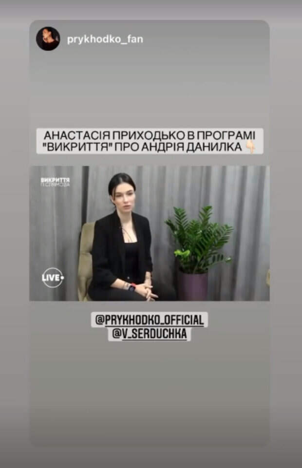 На этот раз певица опубликовала новое видео на своей странице в Инстаграм. На кадрах Анастасия дает интервью и рассказывает, как относится к Верке Сердючке (Андрею Данилко). "Безумно образованный человек и безумно талантливый человек. Мне очень гордо за то, что у нас есть такой артист, как Андрей Данилко. Я безумно его люблю. Такого нигде нет, даже в Америке. Он действительно эксклюзивен. И я считаю, что его достижения действительно достойны истории Украины" "Вообще очень хочу, чтобы вы были в душевной гармонии, это самое главное. Ведь я знаю, как вы развиваетесь между музыкой, которая у вас есть в душе и Веркой Сердючкой. Но я безумно рада тому, что вы у нас есть. Я вами безумно горжусь" Ранее сообщалось, скандал Приходько с Машуковским на "Співають всі" получил неожиданное продолжение: "Меня всегда такие люди..." Также, Приходько вставила свои "пять копеек" в скандал с блогерами Пустовитами: "Ужасающие подробности" Politeka рассказывала, судья "Співають всі" Приходько высмеяла нелепый вид Ким Кардашьян: "Жду ближайшую красную дорожку"