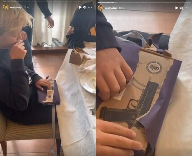Поэтому на семейном празднике Потап присутствовал в дружеской компании. Потап свободно видтся с ребенком, и часто публикует совместные фото. В этот раз в разделе Стори в Инстаграм он показал, какой подарок подарили его уже 13-летнему сыну Андрею. Подарком похвастался и сам мальчик - игрушечным пистолетом, который стреляет пулями. Потап поспешил отреагировать, сказав: "Ну начинается, сейчас стрелять пойдут. А по кому? По воробьям? Ладно, только не по живым существам стреляем" - в привычной ироничной манере сказал артист. «13! Son!!! С Днём Рождения тебя малышь! @potapchiq Я тебя обожаю! Папа», - написал артист. Пользователи Сети присоединились к поздравлениям. «с днюхой!