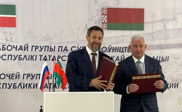 С.П. Горбунова; Дорожная карта по сотрудничеству между Министерством культуры РБ и Министерством культуры РТ в 2023 году; Соглашение о сотрудничестве между ОАО “Амкодор” и Министерством сельского хозяйства и продовольствия РТ; Соглашение о сотрудничестве между Министерством транспорта и дорожного хозяйства РТ и ОАО «Управляющая Компания холдинга «Белавтодор» в сфере дорожного строительства. Фото: Минпромторг Татарстана За 2022 год внешнеторговый оборот между Татарстаном и Белоруссией за 2022 год превысил $817 млн. Месяц назад Олег Коробченко отметил, что стороны реализуют множество проектов. Он добавил, что Белоруссия является стратегическим партнером для Татарстана. Подписывайтесь на telegram-канал и группу «ВКонтакте» «Реального времени».