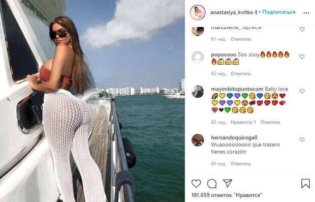 Российская модель Анастасия Квитко, которую называют копией Ким Кардашьян, показала пышные размеры своих форм в прозрачных брюках Пышногрудая модель является одной из самых обсуждаемых и скандальных моделей в Инстаграм. Благодаря своим формам девушка стала моделью белья и активно рекламирует одежду в личном профиле.