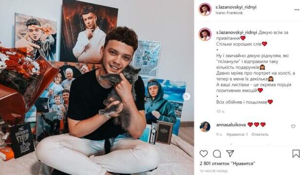На днях он отметил день рождения и поделился кадрами в Instagram. На этот раз празднование, где собралось множество фанатов Сергея, прошло прямо на сцене, где для них был организован специальный концерт. Присоединившиеся к празднику музыканты обеспечивали бесперебойный саундтрек игрой на музыкальных инструментах. Позже певец переместился домой вместе с подарками, которыми фанаты буквально его засыпали. На новых кадрах, которыми Лазановский поделился в сети можно увидеть счастливого парня в окружении презентов, которыми его побаловали фанаты: фото-постеры, букеты, открытки и букеты цветов. В руках он держит маленького серого котенка, которого прижимает к себе. Нежные фото нашли отклик в сердцах пользователей сети и они оставили победителю "Голоса" теплые отзывы: "Ваууу какой красавчик", "Ещё раз поздравляю", "Новых эмоций, вершин, творческих взлетов и побед", "Две милые бусинки на одном фото", "Вот Сережа вас обожают, Я вас просто обожаю. И люблю ваши песни это что-то невероятное". Напомним, победитель «Голосу країни» Лазановский показал своего самого родного человека. Как сообщала Politeka, победитель «Голосу країни» Лазановский восхитил кадрами со своими родными. Также Politeka писала, что победитель «Голосу країни» Лазановский пощеголял в костюме, покорив стилем.