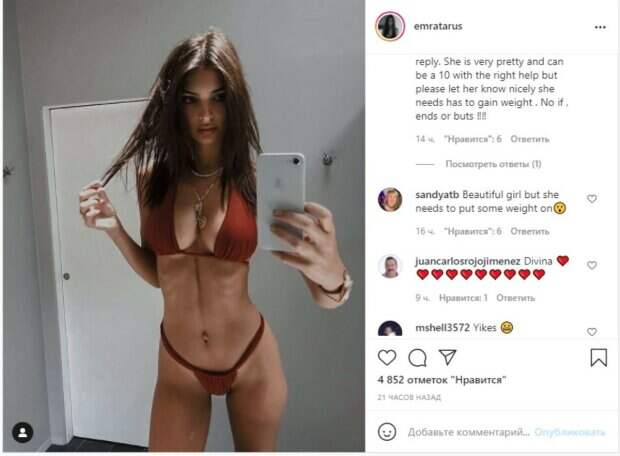 Известная модель Эмили Ратаковски в бордовом купальнике показала идеальную фигуру Эмили Ратаковски родила сына всего два месяца назад и с тех пор публика активно публикует фото звезды, сравнивая ее фигуру теперь и до появления на свет ребенка. По мнению многих, особо ничего не изменилось, ведь звезда невероятно стройная.