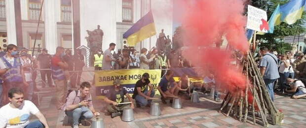 Потасовкой с полицией и кострами с песнопениями под стенами украинского парламента ознаменовался второй день акции в защиту закона о тотальной украинизации. Как передаёт корреспондент «ПолитНавигатора», конфликт с протестующими разгорелся на фоне того, что правоохранители отказались пропускать «активистов», которые несли с собой брёвна для «ватры», которая представляла собой сложенные шалашом дрова и лозунг: «Не подливайте масла в огонь, не трогайте язык!