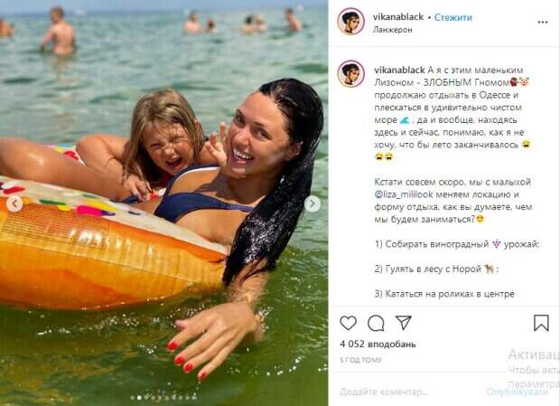 Украинская исполнительница Виктория Смеюха, которая выступает в дуэте «НеАнгелы», похвасталась идеальным телом в бикини Об этом сообщает Politeka со ссылкой на Instagram знаменитости. «А я с этим маленьким Лизоном - ЗЛОБНЫМ Гномом👺🤡 продолжаю отдыхать в Одессе и плескаться в удивительно чистом море 🌊 , да и вообще, находясь здесь и сейчас, понимаю, как я не хочу, что бы лето заканчивалось», - говорится в сообщении.