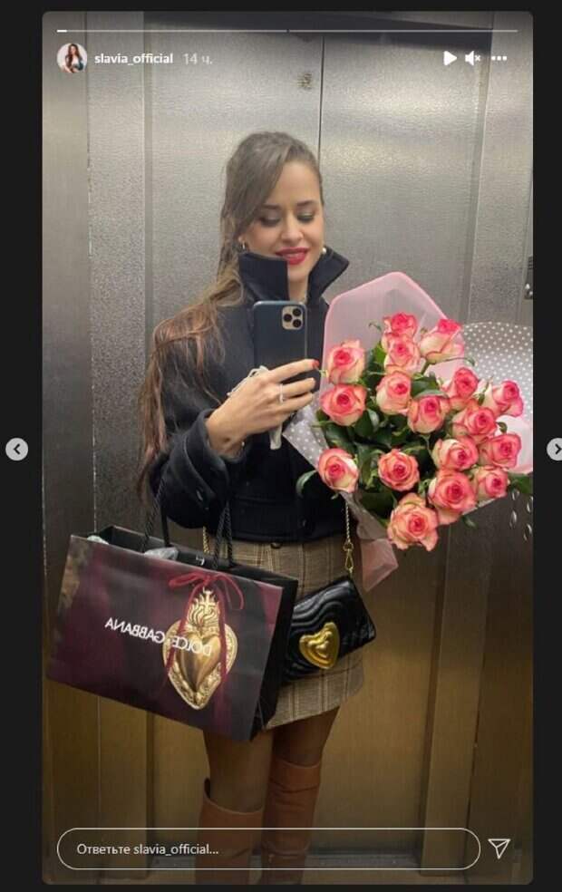 Не забывает Ярослава и об Инстаграм, где делится с фанатами всем интересным. На новом фото певица позировала в юбке и куртке. Красотка стояла в лифте, хвастаясь роскошным букетом цветов. На втором стори певица рассказала, откуда цветы. Как оказалось, это прислали фанаты в честь релиза нового сингла. "Друзья. Сегодня была премьера песни "Любовь-Любовь, которую давно я ждала. Я благодарю за ваши комментарии, благодарю за доставку цветов, они прекрасные", - сказала в видео певица. Фанаты не ставили лайки и не писали комментарии, ведь в сторис нет подобных инструментов. Напомним, разведенный Дзидзьо публично заговорил о чувствах, экс-жена Славия не смолчала Также Politeka сообщала, что экс-жена Дзидзьо в шикарном платье откровенно заговорила о своих чувствах А еще Politeka писала, что близкий друг Дзидзьо пролил свет на его развод и назвал главный недостаток Славии