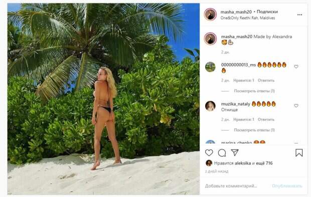 Жена Олега Гусева, легенды и тренера "Динамо", показала себя на отдыхе На фото красотка показала себя в черном купальнике, который практически ничего не прикрывал. Маша развернулась спиной и демонстрировала загорелые ягодицы, а волосы оставила распущенными. Гусева дополнила образ стильными очками. Как можно заметить, звезда была на отдыхе на Мальдивах и позировала на пляже.