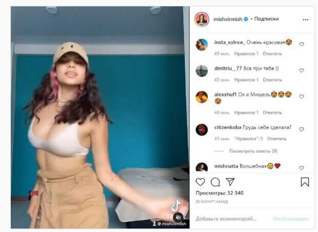 Кадры получились будоражащими и даже загорающими, так как Мишель не стеснялась своего тела. Об этом пишет Politeka.net со ссылкой на страничку знаменитости. "Если вы ещё не увидели в тик токе, оставлю здесь", - написала звезда. Фанаты посмотрели ролик более 30 тысяч раз и написали комментарии: "Очаровательная", "Очень красивая", "Все при тебе", "Ох и Мишель", "Бюст себе сделала?", "Волшебная", "Мишка, хорошо отдохнуть тебе. Набраться сил, энергии", "И как перестать это смотреть?", "Ты реально классная", "Только и низ нужно открыть, пластичная", "Ты просто бомба", "А куда талию дела?" Мы писали, что популярная певица Мишель Андраде, которую продюсирует Потап, впечатлила пикантными деталями в постели. Девушка выложила откровенное фото на своей странице в соцсети "Инстаграм" и похвасталась достижениями в ушедшем году. Она показалась поклонникам в белом лифчике, а нижнюю часть тела спрятала под одеялом. Напомним, подопечная Потапа в кружевном белье засветила упругих "малышек" прямо в постели А еще Politeka писала, что знойная подопечная Потапа Мишель Андраде покрутила смелым декольте прямо перед камерой Также Politeka сообщала, что подопечная Потапа смачно потрусила ягодицами, публика оживилась
