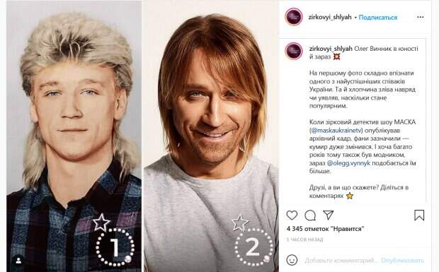 Для этого архивный снимок поместили в коллаж с недавним фото певца. «На первом фото сложно узнать одного из самых успешных певцов Украины. И парень слева вряд ли представлял, насколько станет популярным. Когда звездный детектив шоу МАСКА опубликовал архивный кадр, фаны сказали - кумир очень изменился. И хотя много лет назад также был модником, сейчас нравится им больше», - говорится в подписи к фото. Стоит отметить, что молодой Винник действительно выглядит очень непохожим на себя сегодняшнего. Многих украинцев особенно смутила его прическа и форма носа. Комментаторы тут же принялись обсуждать, какой образ идет певцу больше. Нужно отметить, что его фото в молодости удивило даже некоторых самых преданных фанатов артиста. «Носик переделал. Это точно он слева?», «Ничего себе парень. На том фото ему лет 35», «Слева на какого-то актёра похож, справа - сам собой», «Самый красивый всегда», «Иногда возраст к лицу лучше чем молодость», «На Шатунова похож», «Ого разительные изменения», - пишут люди. Напомним, голосистые красотки из "Голос країни" покорили Винника, певец не сдержал чувств: "С такими…". Как сообщала Politeka, Винник на "Голосі країни" смутил мужа Сумской неожиданным признанием: "Виталий, не ревнуй". Также Politeka писала, что романтичный Винник на "Голосі країни" не сдержал чувств в День всех влюбленных: "Пронизывает так, что...".