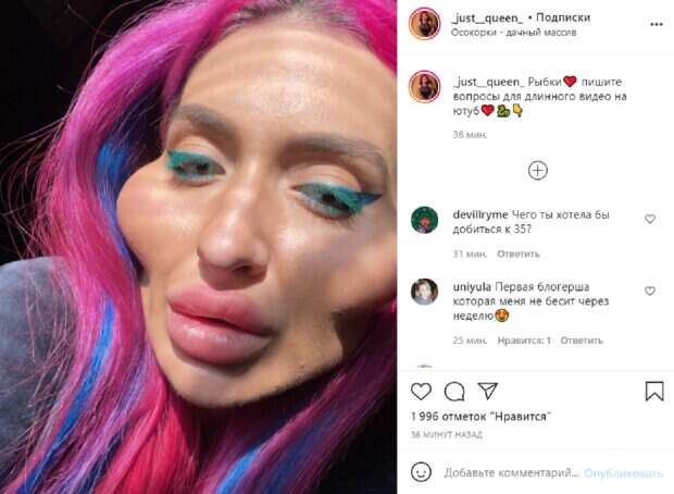 net Девушка делится с ними не только зарисовками из своей жизни, но и рекламирует различные товары, тем самым зарабатывая себе на жизнь. В этот раз Покрещук решила записать новое видео, а для этого попросила своих подписчиков задавать ей вопросы на различную тематику. А чтобы разговор пошёл поживее, показала свое «переделанное» лицо крупным планом. «Рыбки❤️ пишите вопросы для длинного видео на ютуб❤️