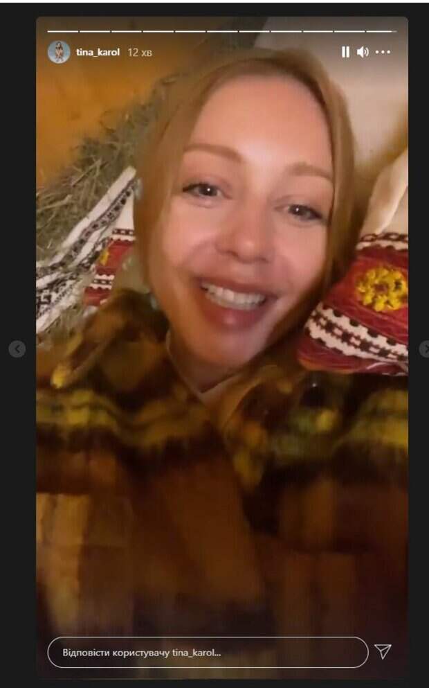 Известная украинская певица Тина Кароль показала, как умеет развлекаться На кадрах Тина Кароль позирует в одежде, лежа на вышитых полотенцах. Красотка улыбалась, а волосы оставила распущенными. Певица показывала себя среди сена, как можно понять, звезда решила устроить релакс на сеновале. Кадры получились забавными и лёгкими, ведь Тина на них улыбалась и сверкала своей красотой.