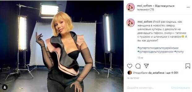 Популярная украинская фотограф и судья проекта «Супер топ-модель по-украински» Соня Плакидюк засветила безупречные формы в наряде с разрезами Как рассказывает Politeka, фотографией красотка поделилась у себя в Instagram. «Иной раз сидишь, как женщина в новостях: сверху шелковые кутюры с декольте на двенадцать персон, снизу— тапочки с пушком и штанишки с начесом