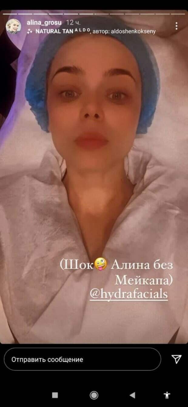 Популярная украинская певица Алина Гросу показала, как ухаживает за кожей на приеме у косметолога В разделе Стори в Инстаграм девушка решила показать, как ухаживает за собой и как приводит себя в порядок у косметолога на приеме. Не забыла при этом молодая артистка и подшутить над поклонниками, показывая лицо без макияжа.