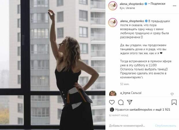 Широкий пояс подчеркнул стройность талии и обтянул идеальные бедра. Звезда вытянула вверх руку и прикрыла глаза.  В посте красотка рассказала своим поклонникам счастливую новость. Красотка решила возобновить свои уроки танцев, которые стали популярны во время весеннего карантина.  "В предыдущем посте я сказала, что пора возвращать одну нашу с вами любимую традицию и сразу была рассекречена