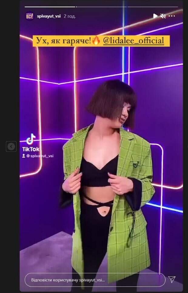 Сейчас красотка активно ведет социальные сети, где делится самым интересным. На новых кадрах Лида показалась в стильном пиджаке, топе и штанах с вырезами. Красотка пустилась в пляс на фоне яркой стены, демонстрируя роскошные изгибы. Кадры получились очень зажигательными и интересными. Видео опубликовала официальная страничка Співають всі в ТикТок, откуда сделала репост Лида на свою страничку. "Ух, как горячо. Огонь. 21 июля, премьера мегашоу Співають всі на канале Украина", - написано под видео в ТикТок. Напомним, Никитюк с подопечной Монатика померились фигурками в узких купальниках А еще Politeka сообщала, что подопечная Монатика в вызывающем красном купальнике показала фигуру со всех ракурсов Также Politeka писала, что восходящая звезда Лида Ли в прозрачном платье не оставила равнодушной жену Монатика