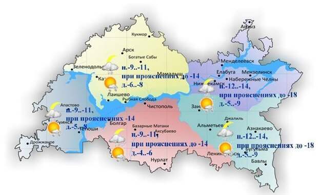 В воскресенье, 5 февраля, в Татарстане ожидается облачная с прояснениями погода и северо-восточный умеренный ветер. Такой прогноз дали в Гидрометцентре республики. Днем в Татарстане ожидается от -4 до -9 градусов. В Казани синоптики прогнозируют от -6 до -8°С. По данным Гидрометцентра Татарстана, местами в республике будет идти небольшой снег.