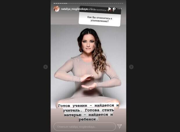 Один из них поднял тему детей. «Как вы относитесь к усыновлению?», - поинтересовался фанат. Судя по ее ответу, отношение Могилевской к этой теме положительное. Певица также загадочно отметила, что если женщина готова к материнству, ребенок у нее обязательно появится. «Готов ученик – найдется и учитель. Готова стать матерью – найдется и ребенок», - заявила звезда. Отметим, что со своим первым мужем, бизнесменом Дмитрием Чалым, Могилевская рассталась в 2005 году спустя всего год после свадьбы. Уже в 2006 она вышла замуж повторно за предпринимателя Егора Долинина. Они прожили вместе пять лет, после чего также развелись. Недавно Могилевская вызвала новую волну слухов о своей личной жизни, засветившись в компании миллионера Олега Рыжова. Впрочем, несмотря на многочисленные совместные фотографии, певица заверяет, что их связывает исключительно дружба, а также работа над одним проектом. Напомним, Могилевская после встреч с красавцем-миллионером впечатлила неожиданным фото, в сети ахнули: «В декрет!». Как сообщала Politeka, 45-летняя Могилевская завела красавца-миллионера, заставив плясать под свою дудку. Также Politeka писала, что Могилевская задрала халат и раскрыла душу после озорства с красавцем-миллионером: "Как холодный душ".