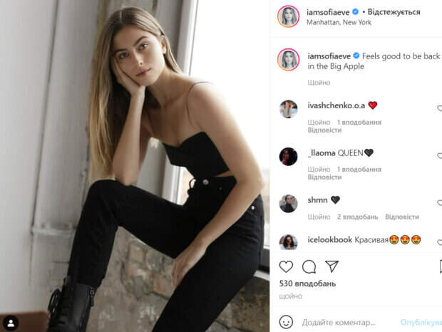 Стоит отметить, что мини-топ подчеркнул упругости красотки, сделав ее образ соблазнительным. Волосы девушки традиционно были распущены. Миловидная красотка стояла возле окна, приподняв руку к лицу. Судя по геолокации, девушка вернулась в США после того, как гостила в Украине. «Приятно вернуться в Большое Яблоко», - подписала фото девушка, говоря о Нью-Йорке, который иногда называют таким прозвищем. В комментариях Софии оставили несколько приятных слов. «Красивая», «Королева», «Супер», «Выглядишь потрясающе», «Как цветочек», - пишут пользователи сети. Как известно, дочке единственного сына Софии Ротару всего 19 лет. В столь юном возрасте она успела попробовать себя в качестве модели и певицы. Также девушка ведет свой блог в Инстаграм и на Ютуб. Ранее мы писали, что Соня Евдокименко покорила ярким образом на День Святого Валентина. Она нанесла яркий праздничный макияж, впечатлив внешним видом. Напомним, что внучка Ротару удивила зрелым видом, красотку не узнать в новом образе: "Вы такая...". Как сообщала Politeka, 19-летняя внучка Софии Ротару в строгом образе дала фору звездной бабушке: "Огонь". Также Politeka писала, что внучка Ротару сверкнула идеальными формами в бесстыжем топике: «Похожа на принцессу, надо принца».