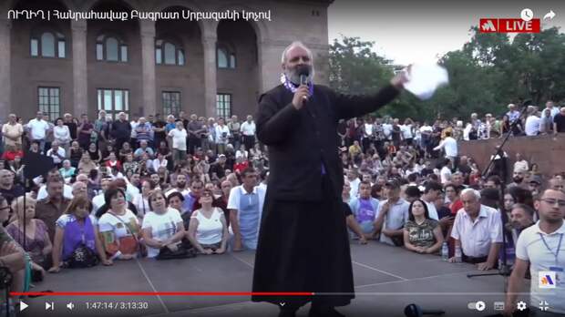 «12 июня произошло то же, что 1 Марта (во время госпереворота 2008 года, который возглавлял Никол Пашинян — прим. ИА Красная Весна), просто на сцене отсутствовал человек, который 1 марта 2008 года заявлял, что „его душа ликовала, когда он узнал, что армянские протестующие отобрали у полицейских дубинки и щиты и били их“», — заявил Галстанян. По словам архиепископа, Пашинян совершил такое же действие и таким же образом уже «находясь внутри здания Парламента» (захватив власть — прим. ИА Красная Весна). «Единственный виновный произошедшего — лжец по имени Никол Пашинян», — заявил лидер протеста, говоря о столкновениях протестующих с полицией, произошедших 12 июня. Напомним, возглавляемое архиепископом ААЦ Багратом Галстаняном движение «Тавуш во имя Родины» с начала мая проводит в Ереване акции протеста. Они требуют отставки правительства Армении. Вечером 12 июня возле здания парламента Армении произошли столкновения демонстрантов с полицией. Полицейские применили для разгона протестующих светошумовые гранаты, которые они бросали, в том числе в толпу демонстрантов. В ходе столкновений пострадал 101 человек, включая 18 полицейских. glavno.smi.today