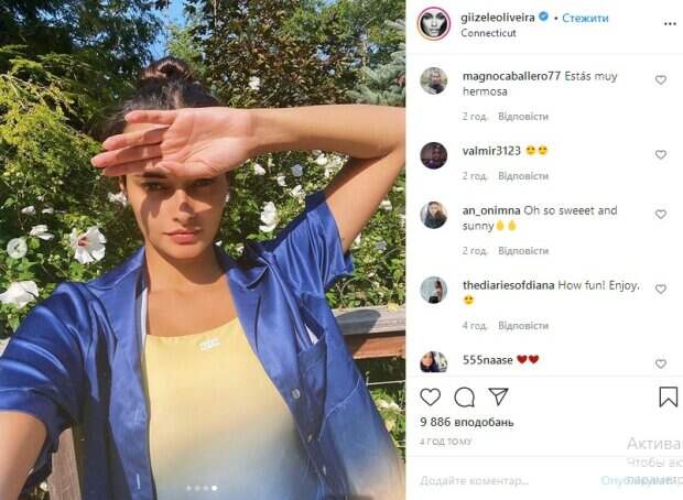 На другой фотографии Оливейра уже в полный рост, задрав руку и элегантно поправляя волосы. «Сладкий ракурс. Слов нет. А лебедь тут явно лишний», «наслаждайся своим днем, малышка», «фантастическая красотка», «вау, очень круто выглядишь», «до чего же хороша», «как солнечно и сладко получились кадры», «хах, семейный отдых. Что может быть лучше», - пишут ее поклонники. Как сообщалось до этого, модель Victoria’s Secret Жизель Оливейра покорила идеальной фигурой в смелом костюме. Жизель любит баловать поклонников откровенными позами на фото. Этот раз не стал исключением. Красотка надела коротенькие шортики, оголив свои невероятно красивые ножки. Девушки присела, широко расставив ноги. Поза получилась очень горячей. Напомним, что Жизель Оливейра подразнила аппетитными булочками в штанах для йоги: "лучший ракурс". Как сообщала Politeka, Жизель Оливейра покрасовалась телом в полупрозрачном корсете: "настоящее наслаждение". Также Politeka писала, что Жизель Оливейра без белья нагнулась, едва не засветив свои "ягодки": "Какая лапочка".