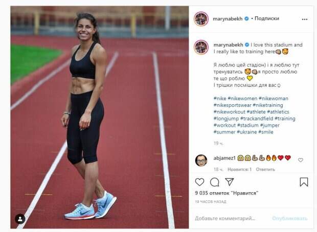 Известная украинская легкоатлетка Марина Бех-Романчук показала себя и рассказала про любовь На фото Марина позирует в черных велотреках и спортивном топе. Красотка дополнила образ голубыми кроссовками, а сама стояла на беговой дорожке стадиона. Романчук улыбалась на камеру и без стыда демонстрировала свои подтянутые формы.
