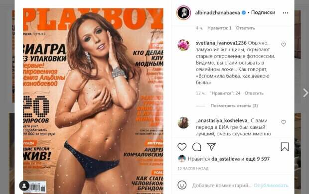 В кадре звезда позировала без лифчика на обложке журнала "Playboy". Певица сжала бюст руками, тем самым прикрыв самое интимное. Кроме черных трусиков на звезде также были сияющие украшения. Альбина Распустила волосы и смотрела в камеру, приоткрыв губы. Она погладила себя по лицу. Данный снимок был сделан более 10 лет назад. О чем артистка сообщила в посте. "Привет из далекого и горячего лета 2007