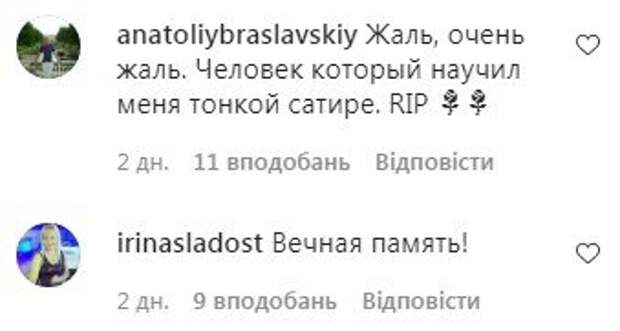 «Грустно», «Уходит эпоха», «Светлая память…», «Очень жаль», «Тоже грущу... ушла легенда», «Грустно✨ Ушла легенда
