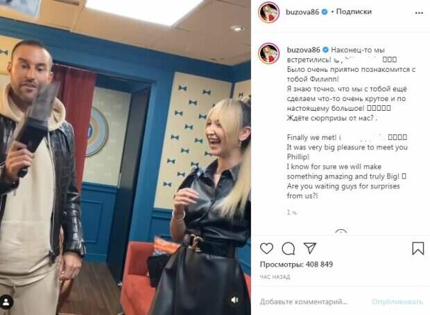 Российская певица и телеведущая Ольга Бузова засветилась в компании высокого красавчика Артистка записала видео вместе с немецким модельером и основателем компании Phillip Plein International Group, Филиппом Плейном, передает Politeka.net. Ольга мило пообщалась с известным немцем и подарила ему свой диск песен.