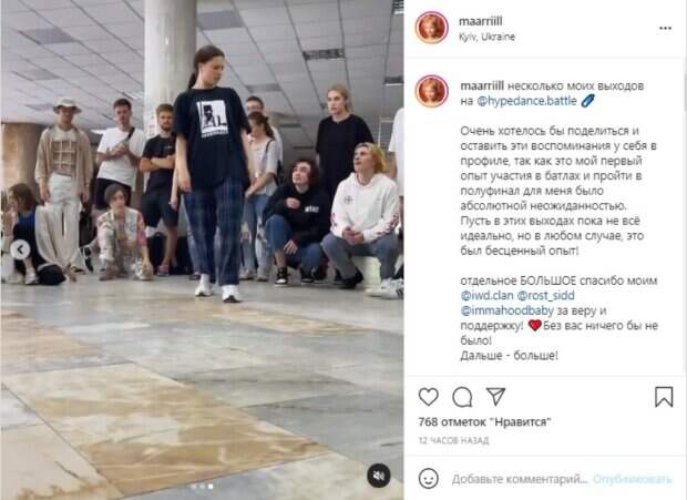 "Несколько моих выходов на @hypedance.battle ☄️ Очень хотелось бы поделиться и оставить эти воспоминания у себя в профиле, так как это мой первый опыт участия в батлах, и пройти в полуфинал для меня было абсолютной неожиданностью. Пусть в этих выходах пока не всё идеально, но в любом случае, это был бесценный опыт! Дальше - больше!", - разоткровенничалась Маша в подписи. На кадрах девушка предстала в объемном наряде: футболке оверсайз и широких штанах. Одежда как раз не сковывала движений, и дочь Кравец, кажется чувствовала себя как рыба в воде. Во время выступления ее обступили другие ребята-танцоры, судя по одобрительным возгласам которых, Машин талант оценили по достоинству. Пользователи кинулись комментировать увиденное. Одной из первых отреагировала мама девушки. "Машулик… какая импровизация крутая!)), - похвалила Елена дочь. - Я сейчас буду смотреть это в двадцатый раз! Кажется, я скоро запомню и выучу все движения!))) хотя вряд ли это можно повторить...♥️" "аааеее❤️"; "Горжусь
