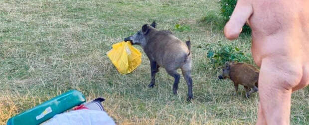На местном пляже в Берлине семья диких кабанов своровала вещи у отдыхающего мужчины. Тот не растерялся и голым решил догнать животных.Фотодоказательства этой погони разорвали Интернет. Изначально люди писали о том, что это произошло в Ирпене. Местное издание опубликовало фото на своей Фейсбук-странице, но не указало ни автора фото, ни где они были сделаны.