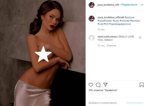 Яна сняла верхнюю часть одежды и предстала с обнаженной грудью. Большие прелести красиво впирали, даже когда красотка пыталась скрыть "богатство" руками. Модель немного сжала бюст ладонью, чтобы в объектив не попало ничего лишнего. На пальчиках красовался черный маникюр. Артистка собрала волнистые волосы в аккуратную прическу, чтобы те не мешали любоваться идеальными видами обнаженного тела. Кроме этого знаменитость слегка приспустила шелковую юбочку, которая соблазнительно села ниже бедер. Макияж с акцентом на пухлые губы дополнил раскованный образ звезды. "Я ПО-НАСТОЯЩЕМУ ЛЮБЛЮ ТЕБЯ, ЯНА!!!", - написал один из комментаторов. Ранее мы писали, что Яна Кошкина стояла в тонкой маечке на бретельках, которая с трудом удерживала большую грудь актрисы. Яна позировала для фото с конским хвостом, который только придал ему пикантности. «Яну Кошкину многие называют одной из самых се**уальных актрис российского кино», - подписали пост авторы аккаунта. Напомним, Яна Кошкина опубликовала селфи с патчами под глазами. Выглядела она превосходно. Особое внимание привлекли ее пухлые губки. «Сегодня мне удалят зубы мудрости. Только 2 или сразу все 4, решим по ходу операции)...», - отметила Кошкина. Напомним, что Яна Кошкина поразила интимными подробностями: «По утрам он подолгу…». Как сообщала Politeka, разводящийся Харламов после "пышногрудой невесты" развлекается дома с новой красоткой: "Гарик, ты супер". Также Politeka писала, что Яна Кошкина показала, как ее осчастливили на диване: «Съемка пошла не по плану».