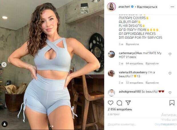 Американская фитнес-модель Ана Чери подразнила фанатов, посветив безупречной фигурой в тесном топе Как сообщает Politeka, кадром знаменитость поделилась у себя на странице в Instagram. «Доброе утро!!! Моя любимая одежда для тренировок. Из этой последней коллекции так много симпатичных вариантов, что вы наверняка услышите, как я часто говорю «любимый»