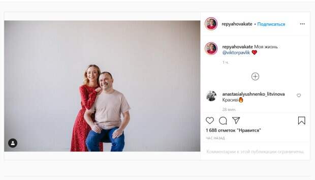 Так, на новом снимке они позируют вдвоем для семейного фото. При этом, Павлик сидит перед камерой на табурете, а его беременная жена стоит сзади, облокотившись на плечо мужа. Репяхова позирует в длинном красном платье, а ее волосы завиты в легкие локоны. В свою очередь, певец не стал сильно наряжаться ради фотосессии, и предстал в обычных джинсах и заметно помятой футболке. «Моя жизнь», - трогательно подписала фото Репяхова. Ее подписчики тут же отреагировали на пост девушки. «Супер. Пусть ваша любовь никогда не угаснет», «Вы аж светитесь от счастья», «Вы такие красивые», «Красивая пара», «Вы классные, всего вам хорошего», «Замечательная пара. Здоровье вашей семье. Пусть ваша любовь никогда не угасает», - пишут люди. Ранее мы рассказывали, Репяхова с радостью рассказывает фолловерам, как проходит ее беременность. Это будет ее первый ребенок, уже известно, что мальчика назовут Мишей. Недавно пара побывала в Египте, под конец отдыха Екатерине стало плохо со здоровьем. Посетив врача по прилету домой, выяснилось, что кроха передавливает ей почку из-за неправильного лежания. Напомним, беременная жена Павлика смутила личными кадрами с 55-летним мужем: "Виктор Франкович, сосисочка.. .". Как сообщала Politeka, заспанный Виктор Павлик нелепо поздравил украинок с 8 марта, кадры конфуза: "Тебе Алик написал?". Также Politeka писала, что молодая жена Виктора Павлика показала фото из роддома и неожиданно сорвалась: "Мы не такие, как все".