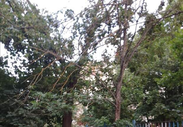 В редакцию Тульской службы новостей обратились местные жители. Они рассказали, что после вчерашнего сильного ветра в южной части Тулы (на проспекте Ленина) и около остановки «Совхоз Декоративные культуры» стихия надломила ветку дерева. Одну часть местным удалось убрать самостоятельно, другая так и осталась висеть.