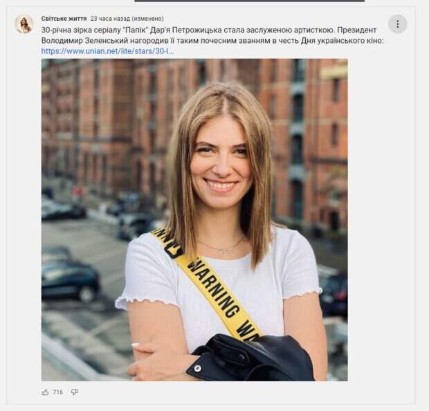 Свои награды получили 85-летняя Нина Антонова - звание "Народной артистки Украины"; 61-летний Станислав Боклан - орден "За заслуги" III степени; Ольга Сумская - орден княгини Ольги III степени; актер и телеведущий Юрий Горбунов - орден "За заслуги" III степени. Также среди награжденных оказалась и Дарья Петрожицкая, теперь она - Заслуженная артистка Украины. В Сети по-разному отреагировали на такое решение власти, некоторых это даже "взбесило". В частности, под постом официальной группы "Світське Життя" в Ютуб написали следующее: "Скоро в университете будут давать заслуженный артист. Смешно, это обесценивает награду", "За какие такие заслуги? Кто-то всю жизнь пашет и нечего, а она в одном сериале снялась и ей заслуженную", "Люблю Петрожицкую, люблю ее игру в фильмах, кажется, что и человек она хорошая ... Но Заслуженного актера еще рановато!", "Ну конечно, сериал-то студии квартал 95, за съёмки в таком и народного дать не грех", "Папик постарался...". Отметим, Дарья Петрожицкая снялась в сериалах "Квартал 95": "Папик", "Мышеловка для кота" и других. Напомним, звезда "Папика" Петрожицкая заворожила образом с блестками на лице Как сообщает Politeka.net, звезда «Папика» Петрожицкая в образе голливудской красотки ошеломила украинцев Также Politeka писала, что звезда "Папика" Петрожицкая показала, где ей сейчас приходится работать