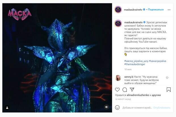 Выход на сцену шоу "Маска" "Стрекозы" в который раз заинтриговал и поклонников проекта, и самих детективов, которые никак не могут рассекретить этот персонаж. После выступлений, в которых "Стрекоза" пела женским голосом, она снова ввела в заблуждение звездное жури своим изменившимся голосом. В репертуаре "Стрекозы" в этот раз оказалась знаменитая песня Rag'n'Bone Man "Human", которая в ее исполнении прозвучала невероятно мощно и заворожила глубоким звучанием. "Стрекоза" спела отчетливым мужским голосом, полностью запутав судей таким неожиданным маневром. Настя Каменских не могла сдержать эмоций от удивления и прикрывала удивленное лицо руками, испытывая восхищение, но больше всех была поражена Оля Полякова. Она выкрикивала "Это мужчина!", "Я говорила вам!" и не могла оторвать глаз от таинственной маски Стрекозы. Она даже приоткрыла рот от удивления и непонимания, кто ж там прячется. Поэтому главным для детективов теперь стал вопрос: мужчина или женщина скрывается за этим колоритным и многогранным персонажем. Вместе с детективами этот секрет пытались разгадать и украинцы, которые неотрывно следят за эфирами "Маски". В своих предположениях фанаты все чаще стали называть имя певицы Зианджи, которая умеет петь разными голосами. "Это Боря Апрель или Зианджа", "Думаю, там Борис Апрель", "Отчетливо слышна Зианджа", "Травести дива Монро", "Очень похоже на Монро... Я в тот раз думала,- Марув", "Это девушка, умеет хорошо изменять голос",- написали фолловеры в соцсети. Посмотреть эту публикацию в Instagram Публикация от The Masked Singer Ukraine (@maskaukrainetv) Напомним, Остапчук с косой "слился" в страстном поцелуе с участником шоу "Маска": "Тьфу блин, мужчина в женской..." Как сообщала Politeka, Дзидзьо, Полякова и другие детективы шоу "Маска" разинули рты из-за участника, такого никто не ожидал: "Какие тупые!" Также Politeka писала, что Каменских обтянула идеальную фигурку бархатом, покорив новым роскошным образом: "Везде хороша"