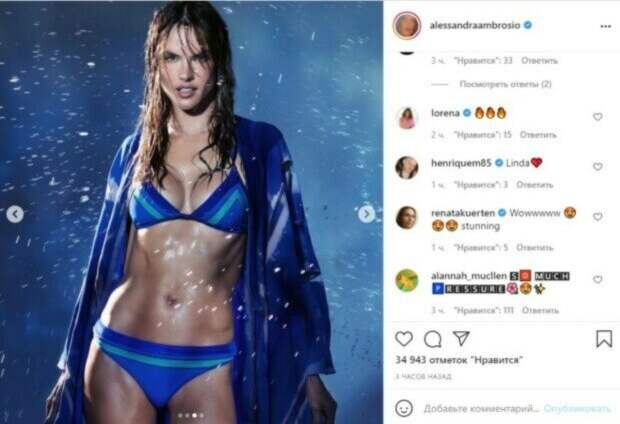 На фото из новой фотосессии звезды хорошо видно, что Алессандре есть что показать, а также удивить. В платье цвета морской волны с аккуратными вырезами звезда не только хвастнула тоненькой талией, но и снова акцентировала внимание на тонких ногах без целлюлита и дряблости. Добиться хорошей формы Амбросио помогают также и тренера, с которыми она занимается в зале и не скрывает этого. Звезде подбирают нужный комплекс упражнений, определяя постепенно оптимальный уровень нагрузок, в которых она нуждается. Благодаря этому на таких съемках, как в этот раз, Амбросио нет равных. У себя в профиле модель также выложила серию кадров, поэтому получила массу положительных отзывов от фанатов. С тех пор Алессандра следит за собой и надет себе поблажек. Как видно на новых кадрах для очередной фотосессии с коллекцией новой одежды, выглядит знаменитость превосходно. Особенно завораживает образ русалочки и кокетки в синем бикини. «Летняя романтика; Так потрясающе; безупречность в простоте; Ваууууу потрясающий образ русалочки; Великолепно; создана для лета; Великолепно; Потрясающе; Мечты-мечты, быть такой же крутой; здесь одно великолепие дивы!!; королева любви; сахарная женщина; Ты великолепна», - пишут под фото. Напомним, экс-ангел Victoria’s Secret в наряде с бесстыжими вырезами изумила каждым изгибом Также Politeka писала, что экс-ангел Victoria’s Secret заставила наслаждаться каждым изгибом в мини-бикини А еще Politeka сообщала, что экс-ангел Victoria’s Secret свела с ума подтянутым телом в образе зайки