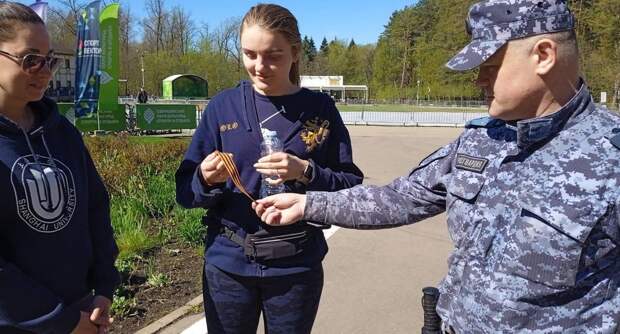 В преддверии Дня Победы сотрудники вневедомственной охраны Главного управления Росгвардии по Московской области присоединились к патриотической акции «Георгиевская ленточка». Они раздали праздничные символы местным жителям.
