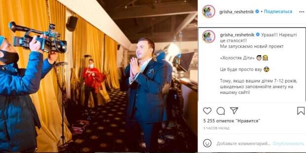 Ведущий шоу "Холостяк" сообщил о создании нового проекта Как передает Politeka.net, соответственный пост Григорий Решетник опубликовал на своей страничке Instagram. "Ура! Наконец это произошло! Мы запускаем новый проект «Холостяк Дети». Это будет просто вау", - сообщил телеведущий. Также он отметил, что в проекте смогут принять участие дети от 7 до 12 лет.