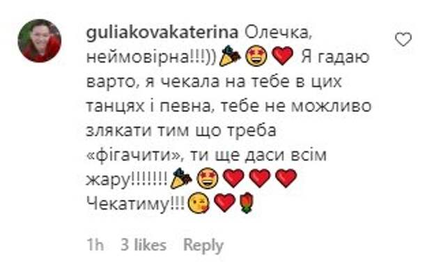 На других снимках Ольга Сумская запечатлена в компании Игоря Гелуненко и Дарьи Петрожицкой - пары, с которой она станцевала глубокий модерн. Актриса прильнула к танцору с одной стороны и позволила ему обнять себя за талию, ее коллега пристроилась под другой рукой красавца. Ольга Сумская призналась, что ей понравилось выступать на паркете "Танців з зірками" и она была бы рада повторить этот опыт, став участницей следующего сезона: "Спасибо всей команде «Танцев» за это фантастическое вдохновение на паркете и незабываемую атмосферу! Друзья мои, как думаете, стоит ли мне в следующем сезоне попробовать свои силы и тряхнуть, как говорится ...?