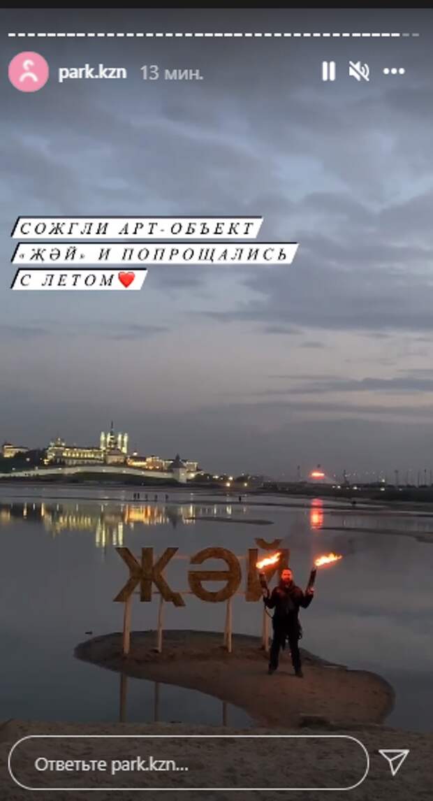 В столице Татарстана завершается второй и финальный день городского фестиваля народов Поволжья «Итиль». Сегодня в его рамках сожгли арт-объект — надпись "җәй», что в переводе с татарского означает «лето». Мероприятие проходило рядом с Центром семьи «Казан». На нем можно было ознакомиться с историей и культурой народов Поволжья на тематических стендах, поучаствовать в мастер классах и т.
