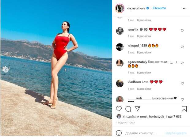 Даша опубликовала две фотографии – на первой она позирует возле модернизированного душа в темно-красном купальнике, а на второй певица сфотографировалась возле моря уже в светлом красном купальнике. "Просто не имеет значения, 1 или 2. Это оба любимые @moodstories", - написала Даша. Поклонники певицы за час поставили почти всем тысяч лайков и написали много комментариев. "Рыба моя красивуща