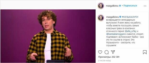 Известный российский шоумен комик Максим Галкин решил задействовать в одном из своих проектов свою жену Аллу Пугачеву Об этом сообщает Politeka со ссылкой на видео, размещенное в Intagram знаменитости. "#МУЗЫКАЛИТИ возвращается легендарным выпуском! Я взял жену на работу, чтобы вместе послушать самые классные треки в компании отличного парня!