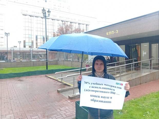 Требование исключить использование ИИ для целей обучения стало лозунгом одиночного пикета, проведенного членом общественной организации защиты семьи «Родительское Всероссийское Сопротивление» (РВС) Андреем Жониным, сообщает 31 октября ИА Красная Весна. Общественник вышел на пикет у Правительства РФ в рамках всероссийской акции РВС против разрушения образования.