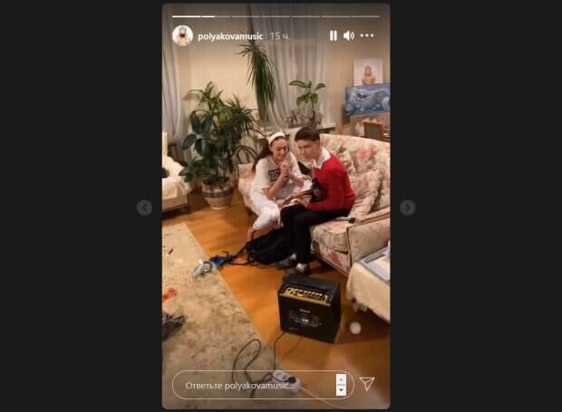 В своем Instagram Stories Оля Полякова показала, как случайно застукала 15-летнюю дочку в компании парня у себя дома. Певица сняла видео, где она, словно детектив, медленно входит в дверь и показывает романтическую обстановку, в которой находилась "сладкая парочка". На кадрах Полякова под звуки электрогитары показывает разбросанные на полу игрушки, а потом медленно переводит камеру на небольшой диванчик, где сидела перед парнем и восхищенно за ним наблюдала. Сам парень в этот момент самозабвенно играл на гитаре, быстро перебирая струны. Маша была в милом ободке с ушками и домашнем костюмчике белого цвета. Девушка, увидев, что их идиллию нарушила звездная мама, начала улыбаться и смотреть на нее, а когда и парень заметил Олю Полякову, на его лице появилась смущенная улыбка. "Давай, давай",- призывала Оля Полякова парня играть на гитаре, а также спросила у дочери, почему она сама не играет. "Маша, а ты давай, бери гитару",- говорила Полякова дочери, но Маша продолжала сидеть и слушать игру своего парня. Напомним, что Маша Полякова в своем Instagram уже знакомила поклонников со своим парнем, с которым встречается с прошлого года. Они вместе играют на гитаре и часто проводят свободное время вместе. Дочь Поляковой уже неоднократно баловала подписчиков совместными снимками с ним. Напомним, "Выйди из моей комнаты!": Дочь Оли Поляковой нагрубила возбужденной из-за аварии матери Как сообщала Politeka, 15-летняя дочь Поляковой представила маме своего возлюбленного, фото парочки: "Не лезь!" Также Politeka писала, что 15-летняя дочь Поляковой в коротком топе ошарашила неожиданным образом: не сдержалась даже мать