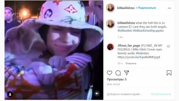 (Чтобы посмотреть, доскролльте до конца страницы) В этот раз в фан-странице появилось видео, на котором звезда обнимает маленькую собачку. Билли надела шляпку и свободную рубашку с принтом известного бренда. Артистка мило улыбалась в камеру. "Почему, черт возьми, это так мило? Я прямо не могу, они два ангела", - написал автор поста. Пост за некоторое время собрал всего несколько просмотров и немного комментариев, ведь группа только набирает популярность. Стоит отметить, что на оригинальную страницу певицы в Инстаграм уже подписаны 72,2 миллиона пользователей сети. Отметим, Билли Айлиш родилась 19 декабря 2001 года в Лос-Анджелесе, США. Родители с ранних лет приучали будущую певицу и ее брата к музыке. Звезда училась, брала уроки хореографии, и даже снялась в клипе брата и его группы на песню «Ocean Eyes». В 2016 году ребята выложили дебютный сингл Айлиш на Sound Cloud, после чего популярность звезды стала расти. Записанная песня имела невероятный успех, было зарегистрировано более 10 млн прослушиваний за короткий промежуток времени. Напомним, Билли Айлиш оказалась на грани смерти, психика не выдержала А еще Politeka писала, что скромница Билли Айлиш случайно засветила огромный бюст в коротенькой маечке: кадры соблазна Также Politeka сообщала, что загадочная Билли Айлиш рискнула показать формы в "тесном" топике: "Это заставит всех замолчать"